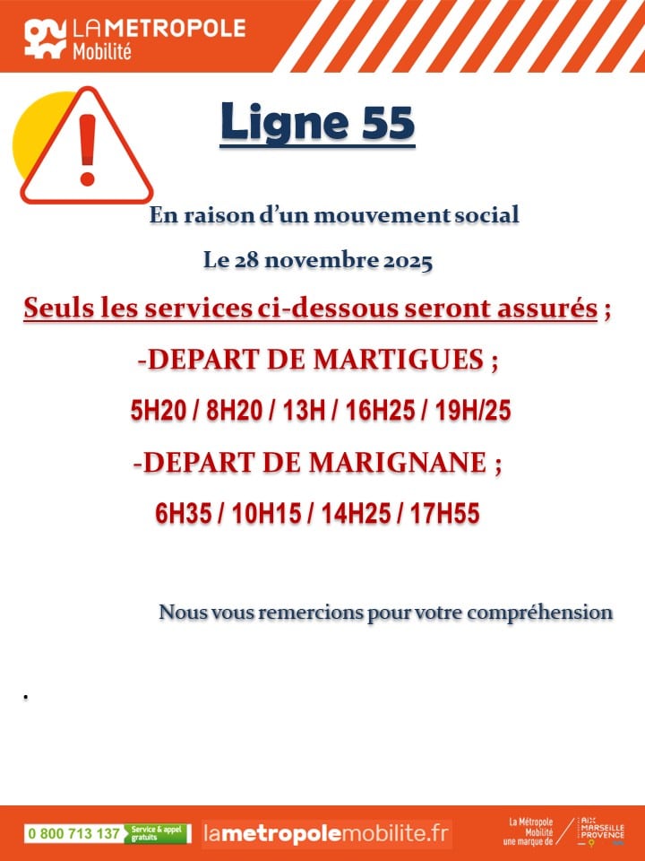 Suite à un mouvement social au sein de la RDT13 et de la RTM interurbain, des perturbations sont annoncées pour la journée de ce vendredi 28 novembre, à savoir pour notre commune :